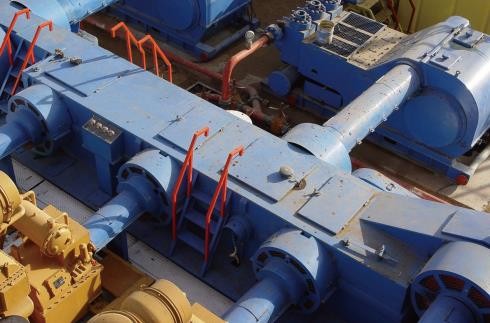 ◆ 机械钻机是柴油机驱动用链条箱并车后驱动绞车和泥浆泵,通过爬台万向轴驱动转盘链条箱带动转盘。