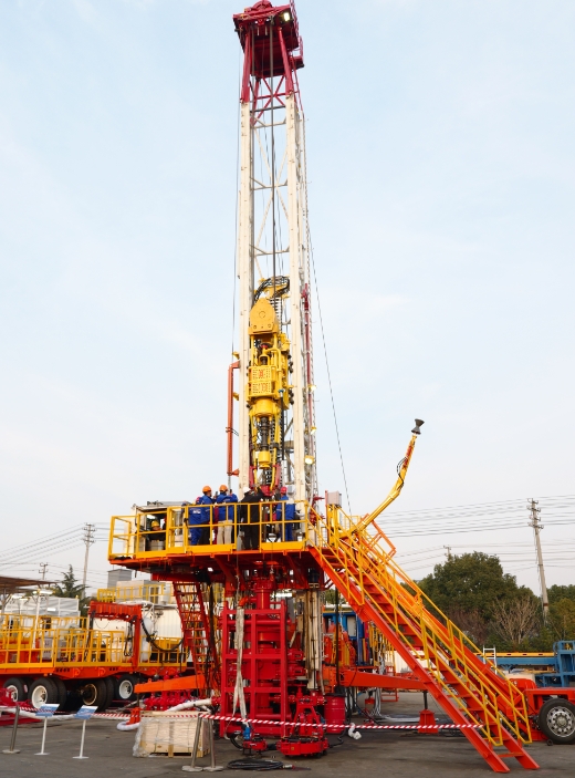 这款数智化修井机堪称石油修井领域的 “革命性产品”,它集交流变频调速、大功率电池储能、自动化钻井功能模块以及先进的生成式人工智能自动化控制技术于一体,代表着钻机自动化、智能化技术发展的先进方向。在实际作业中,下钻势能回收进入电池,电池与发电机联合工作。和传统修井机相比,节能30%以上。此钻机系统还具备与高压电网及其它各类小微电网或供电装置联合供电的特点,实现 100% 绿色修井,减少修井过程90% 碳排放 。同时,此钻机系统配备了小型化的自动猫道、顶驱、铁钻工及自动吊卡等一系列自动化设备,通过智能管理系统协同作业,极大提升了修井作业的效率和安全性。